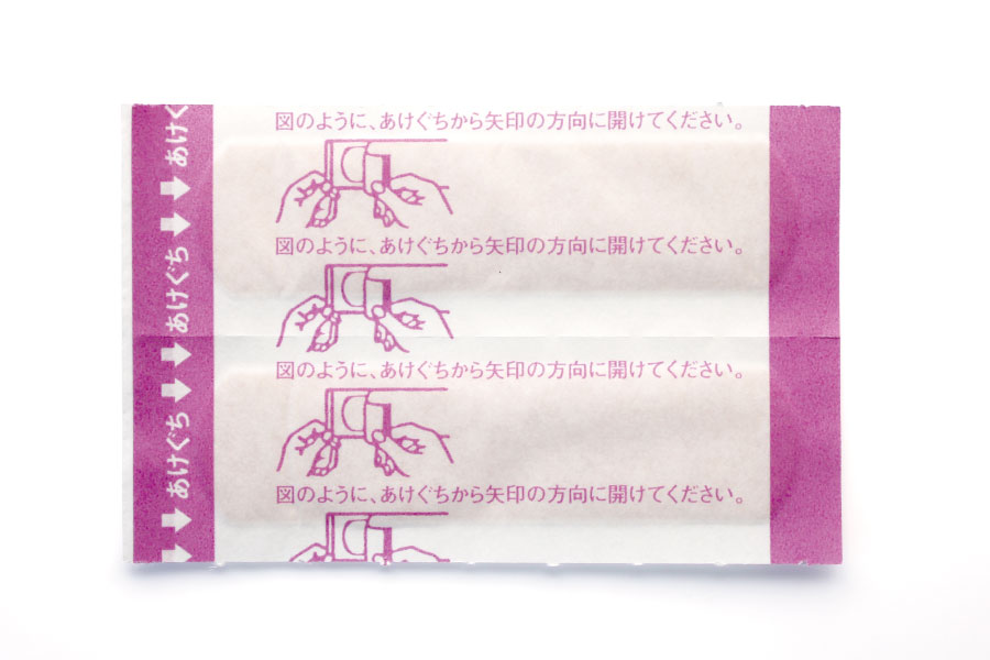 ②個包装をあけぐちから矢印方向にあけて、中身を取り出します。