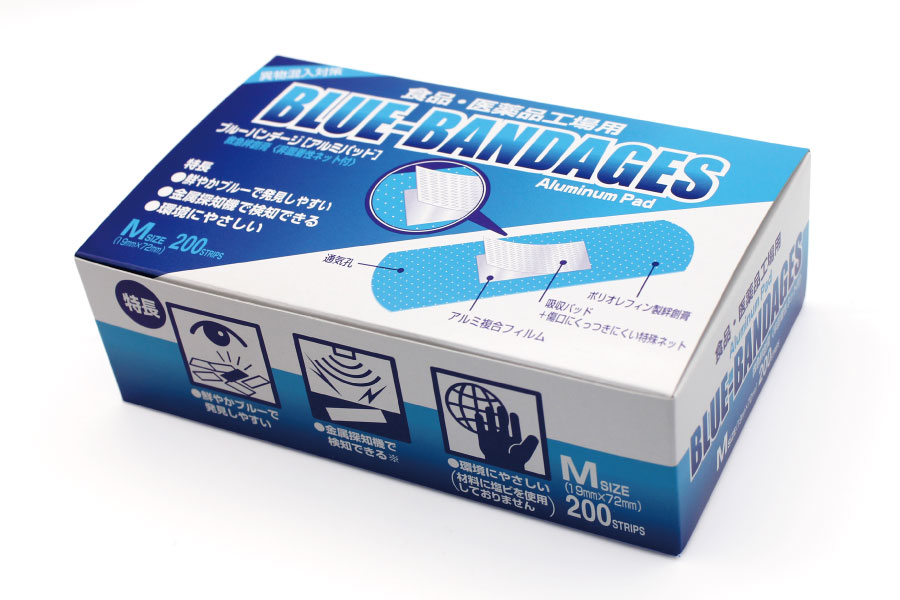 異物混入対策を主目的に開発された「ブルーバンデージ」の特長。