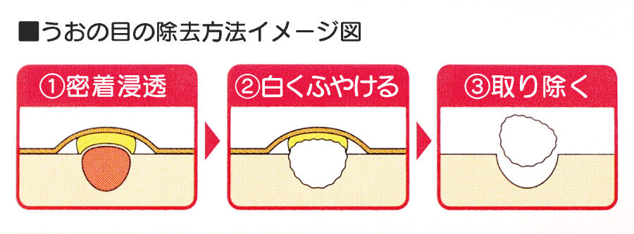 ・魚の目・たこ等の硬くなった皮膚をサリチル酸の効果でやわらかくし除去します。