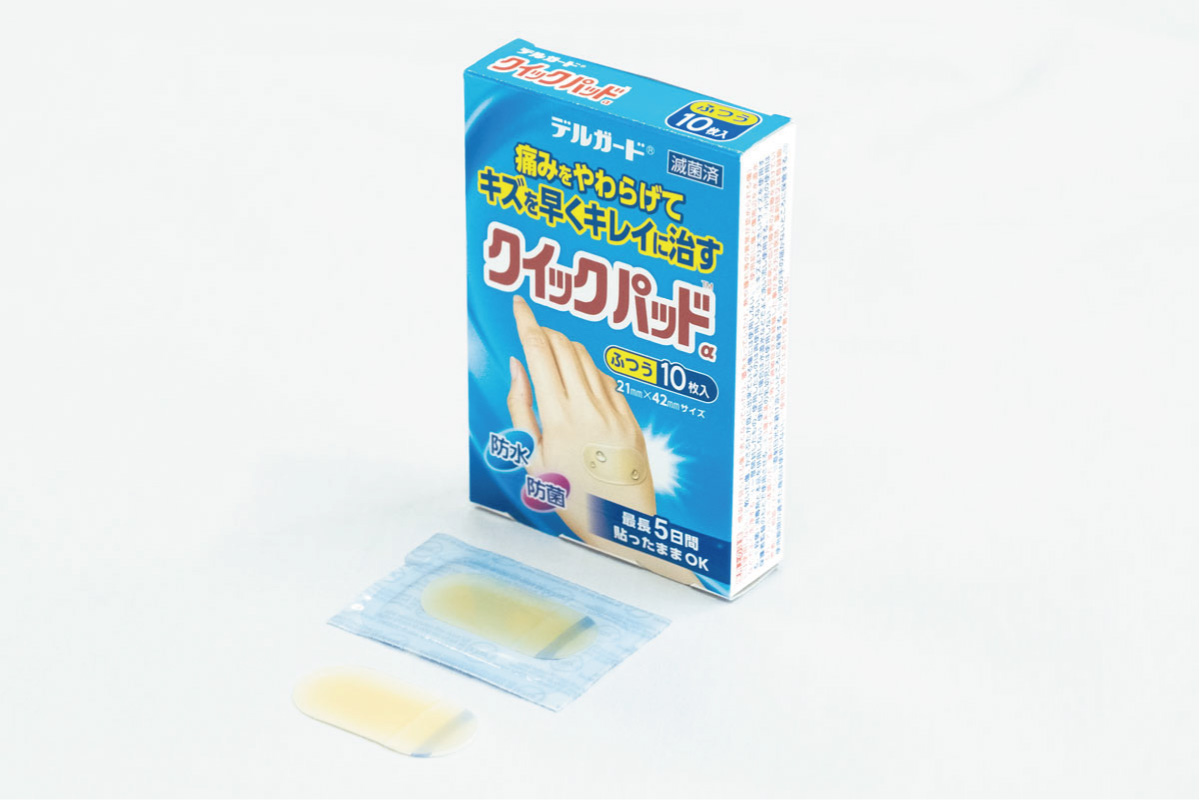 クイックパッドはキズ口から出る浸出液(体液)を吸収し傷口に保持します。この浸出液に含まれる、人間が本来持っている「自然治癒力」を引き出すことで、キズを早くキレイに治します。