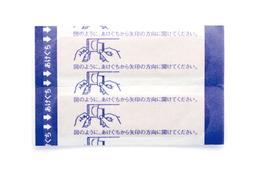 ②個包装をあけぐちから矢印方向にあけて、中身を取り出します。
