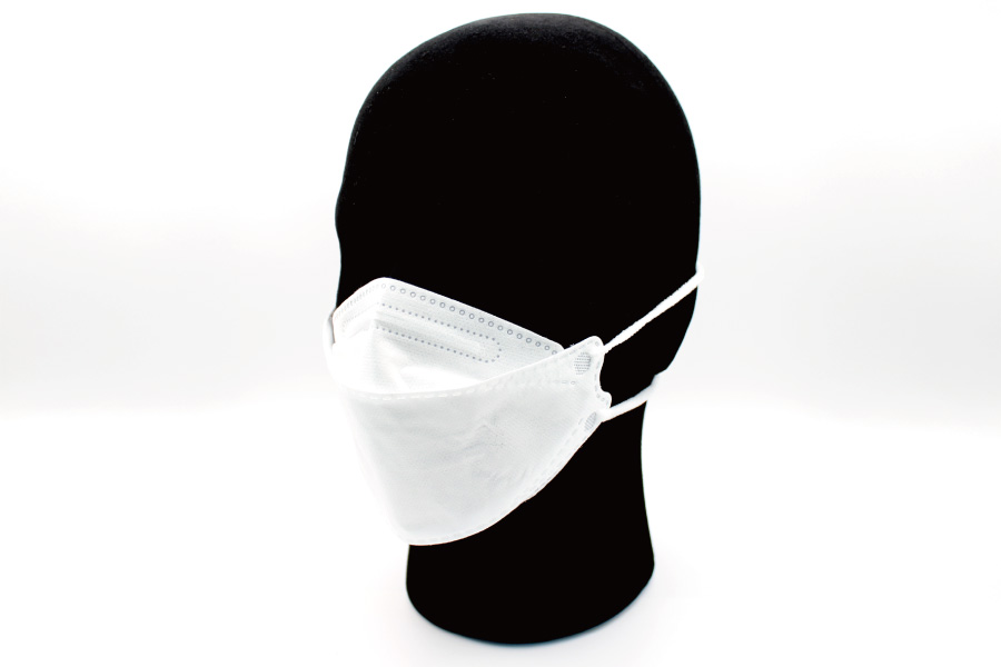 ④鼻からあごまで完全に覆うように空間を調整した後、耳ゴムを耳にかけます。