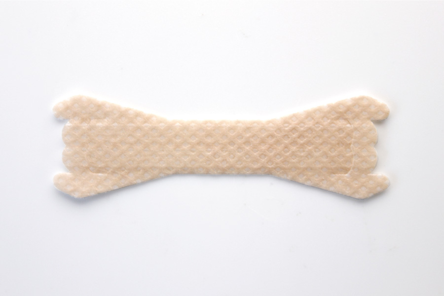 鼻腔拡張テープは、内蔵するプラスチックバーの元に戻ろうとする力を鼻腔を広げるバネとして利用しています。そのため「鼻腔を広げようとする力」が、「テープの粘着を剥がそうとする力」になってしまいます。