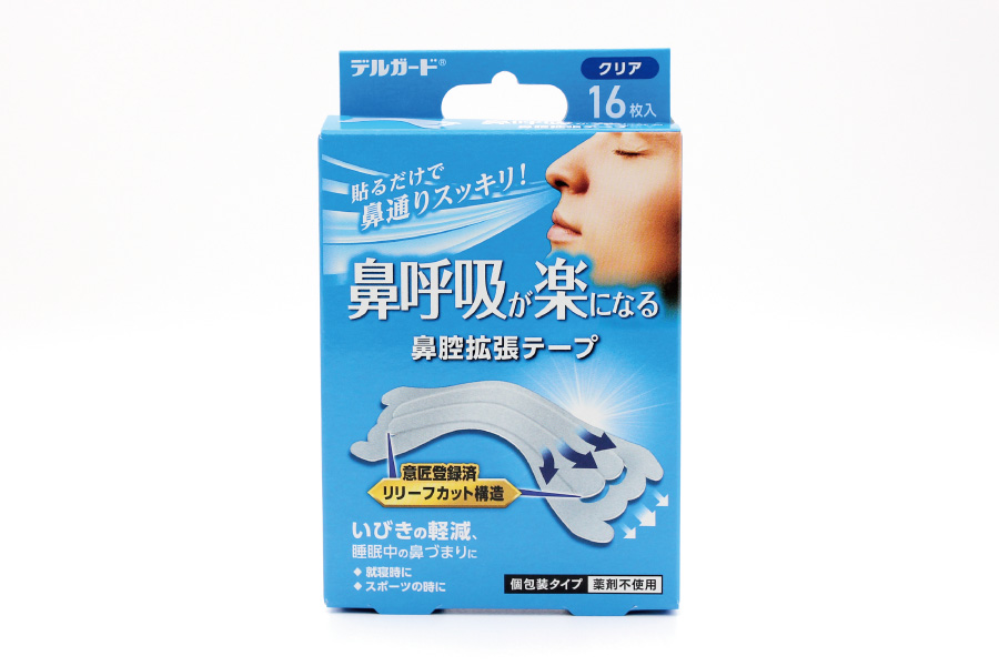 貼るだけで鼻通りスッキリ!独自形状のリリーフカット構造(意匠登録済)が効率よく鼻腔を広げ、睡眠中の鼻づまりやいびきを軽減し鼻呼吸を促します。またスポーツ時にも最適です。